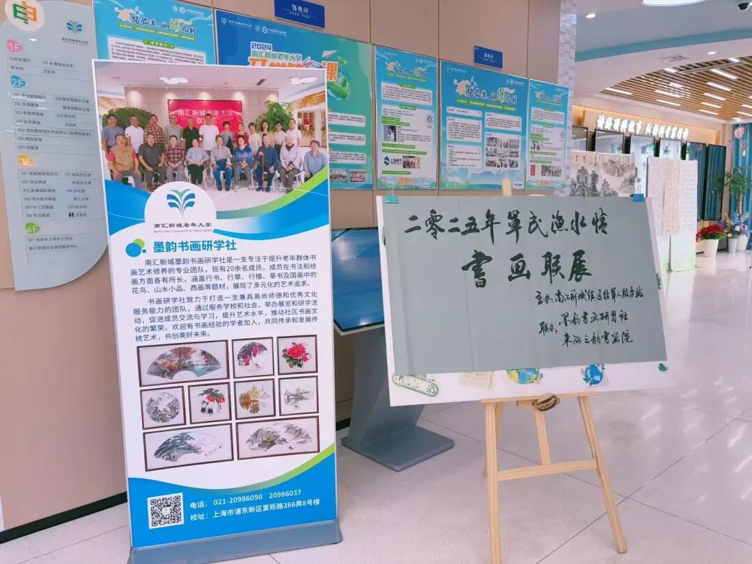 南汇新城老年大学墨韵书画研学社自本学期以来,已累计创作并展出书画作品100多幅。除了在校内展示,社团还多次走进辖区养老机构和为老服务中心,开展作品展览和教学互动,并积极与周边书画爱好者团体开展联谊交流。